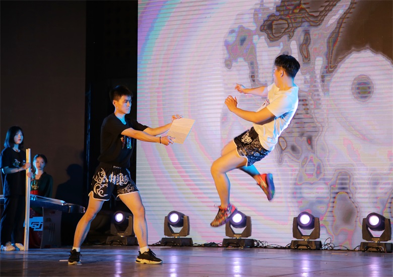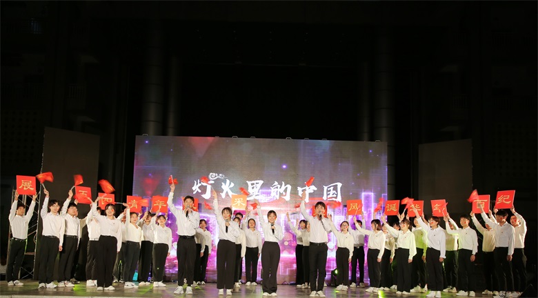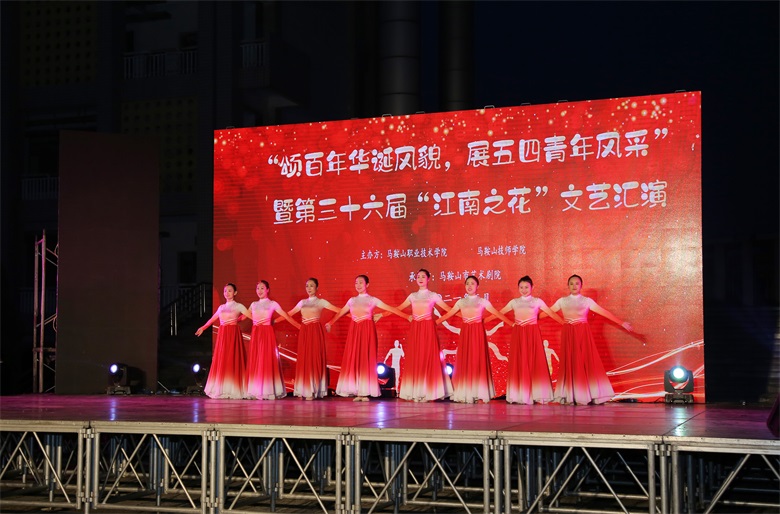 五四风雷,激荡百年,青春之火,赓续长存。晚会在舞蹈《又见映山红》中拉开序幕;配乐朗诵《党啊,生日快乐》声情并茂,触动人心,激励着青年学子坚定理想信念、奋斗强国的决心;吉他弹唱《一万次悲伤》,初夏微风中的清新哼唱,将青春的情绪融入歌声,展现音乐的独特魅力;实战训练《散打品势》,将太极与散打巧妙结合,动静之间,别有一番风味;歌舞《青春恰时来》,以动感旋律唱响美好未来,展现出青年一代的活力与自信;黄梅戏《到底人间欢乐多》,熟悉的旋律,专业的表演,让现场观众切实感受到经典的魅力;古典扇子舞《游山恋》,姿态婀娜,舞步轻盈,仿若置身水墨山水之间;酷炫的《悠悠球表演》,指尖绝活玩转精彩,将整场晚会的氛围推至高潮;书法展示《颂党恩走秀》,青年学子通过纸笔书写对中国共产党百年诞辰的祝福,展现传统文化的时代风采;街舞《Jazz/Breaking》,动感的舞步,酷炫的动作,彰显着新时代大学生的青春活力;晚会在大合唱《灯火里的中国》中完美落幕。