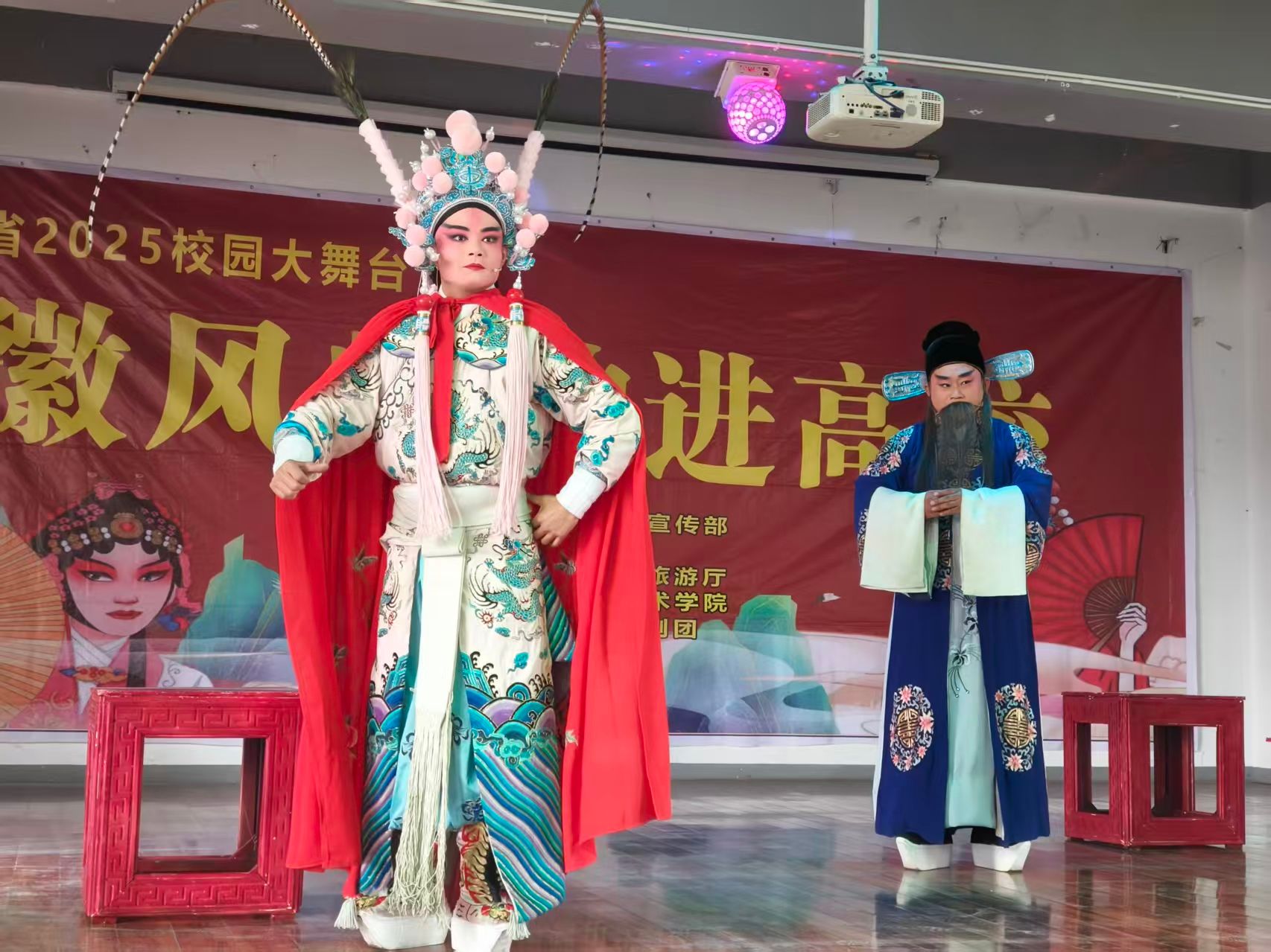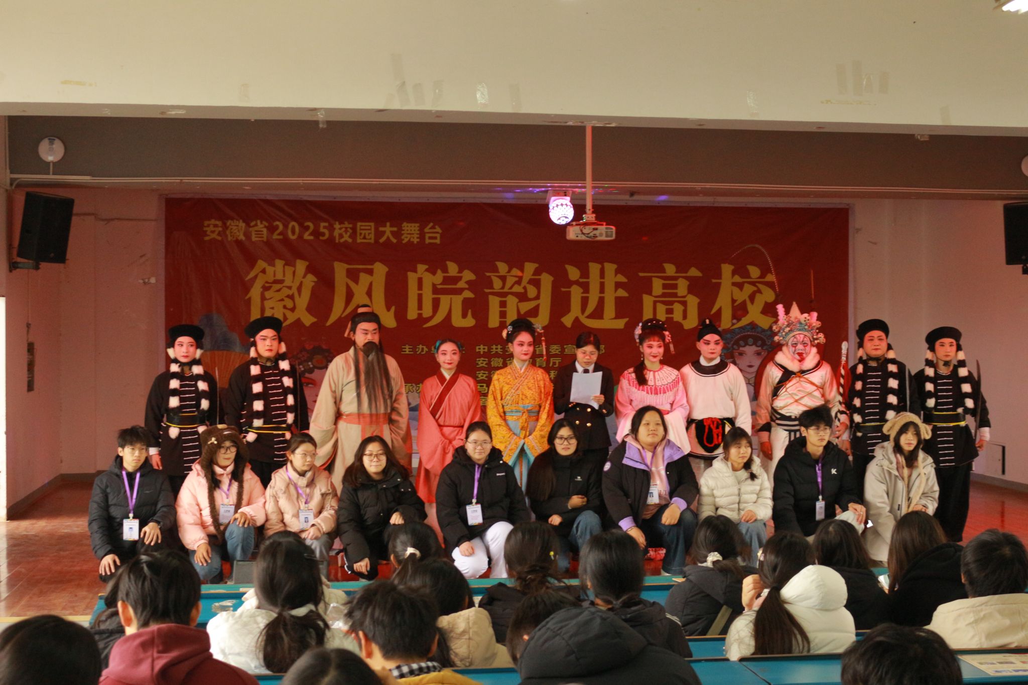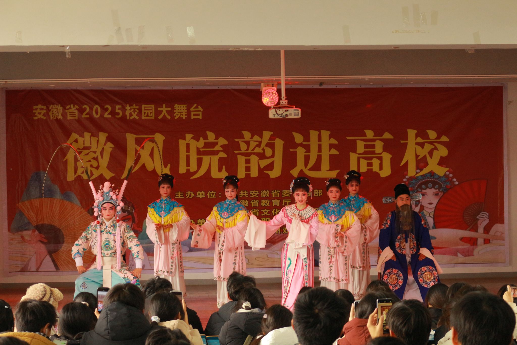 为深入学习实践习近平文化思想,贯彻落实党的二十届四中全会精神和习近平总书记考察安徽重要讲话精神,切实增强青年学生文化自信,扎实推进校园文化建设,12月4日,2025年度“徽风皖韵进高校”戏曲专场演出在学院成功举办。学院200余名师生代表参加观看,现场感受传统戏曲艺术的独特魅力。