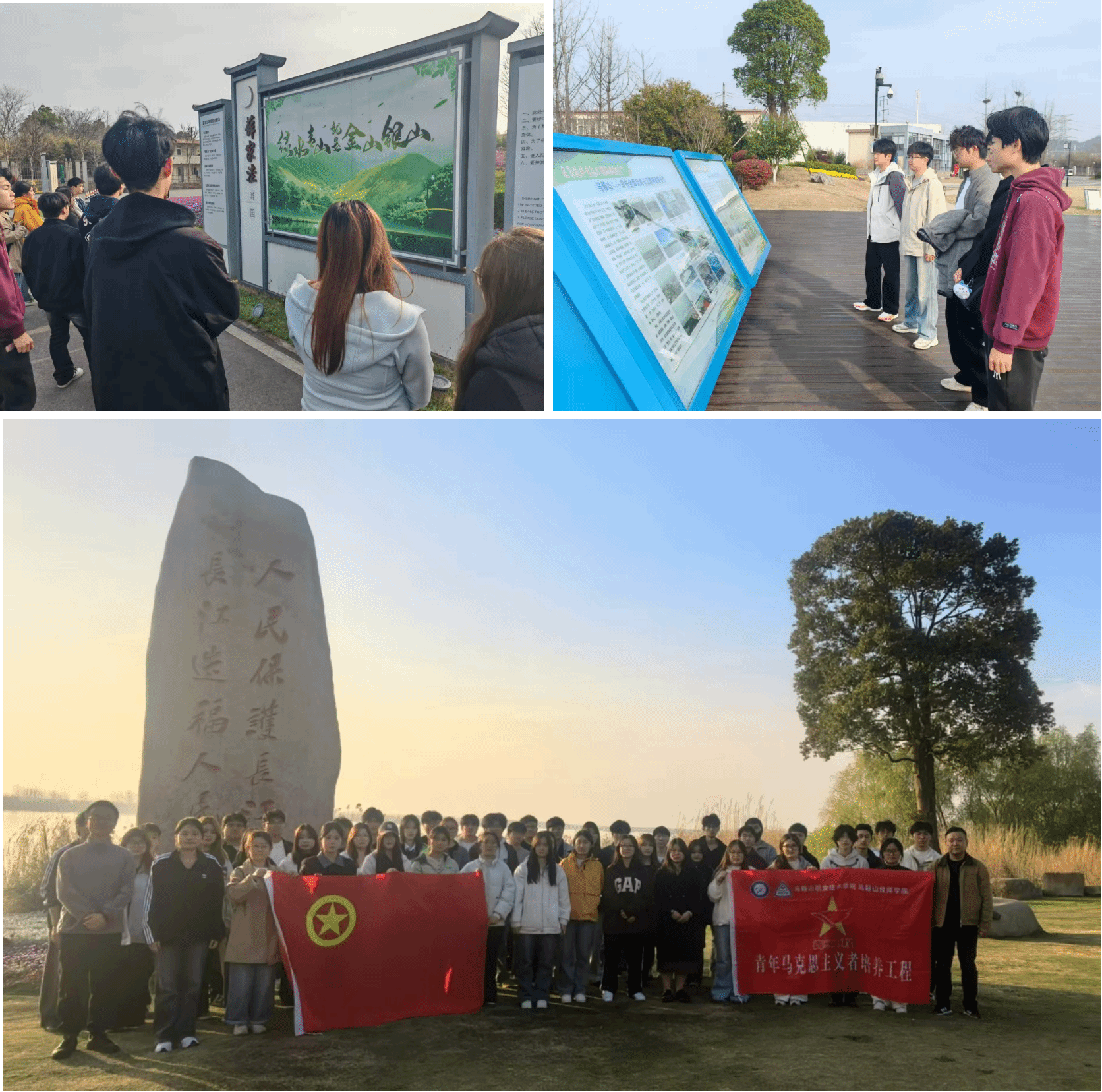 在实践培训中,青马班开展实地研学与素质拓展活动,将理论学习与实践体验深度融合。一方面,实地研学感悟初心。组织学员前往马鞍山党群服务中心与马鞍山薛家洼、滨江公园开展实地研学。在党群服务中心,学员们通过参观学习,深入了解党建引领基层治理的实践成果,感悟党的初心使命与深厚为民情怀;在薛家洼与滨江公园,学员们实地感受长江生态修复的显著成效,深刻体会“绿水青山就是金山银山”的发展理念。另一方面,以素质拓展凝心聚力。以“凝聚青春力量,锻造过硬团队”为目标,开展“超音速”“极限飞盘”“飞盘九宫格”“飞盘投篮”等趣味拓展项目。活动中,学员们分工协作、默契配合,在挑战自我的过程中,锤炼团队协作能力、沟通协调能力与责任担当意识。