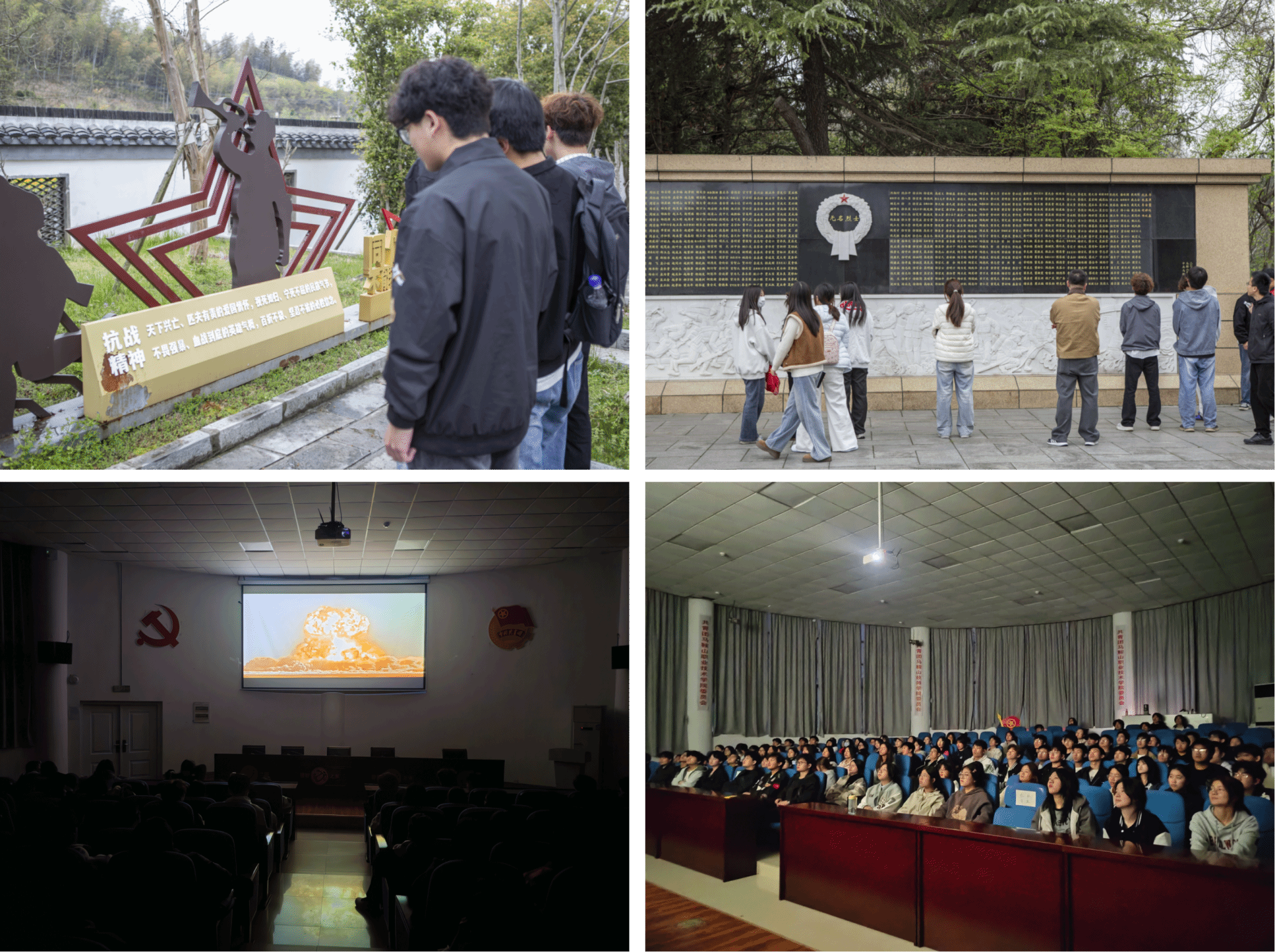 4月2日晚,学院团委组织近100名学生代表前往南区报告厅,集中观看红色电影《横空出世》。影片讲述我国科研人员与解放军指战员在艰苦条件下,自力更生研制原子弹,打破核垄断,铸就民族脊梁的感人历程。4月3日上午,学院团委组织学生代表前往马鞍山濮塘,开展融红色教育与自然体验于一体的春日研学踏青活动。在马鞍山革命烈士陵园,全体师生肃立默哀,怀着崇敬之心缅怀革命英烈,寄托深切哀思;在新四军抗战指挥部旧址,同学们通过历史照片与革命文物,重温新四军将士浴血奋战、抗击日寇的峥嵘岁月;在濮塘怪坡,大家亲身体验自然奇观,在直观感受中激发探索自然奥秘的兴趣;最后,同学们走进濮塘国家度假公园,漫步林间、亲近自然,在放松身心的同时,直观感受乡村振兴战略下生态文旅融合发展的显著成效。